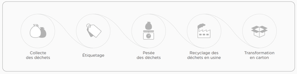 Distributeurs éco-conçus (35 % plastique recyclé, -20 % CO₂), consommables certifiés FSC:tm: et Ecolabel, et solutions de recyclage intégrées.